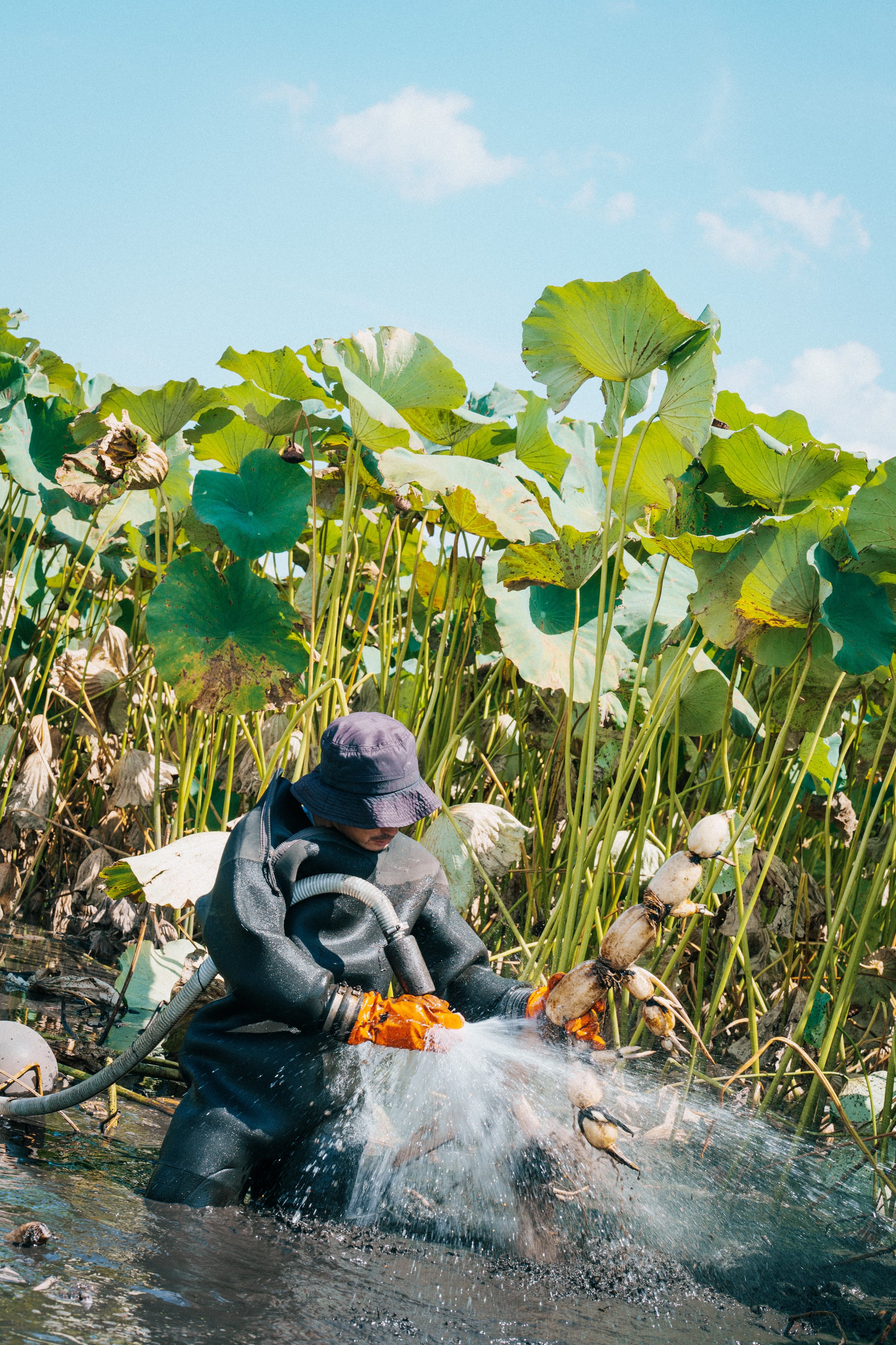 もともとある土壌とれんこんの自生力を大切にし、肥料や農薬に頼らずに自然のままに育てています。
