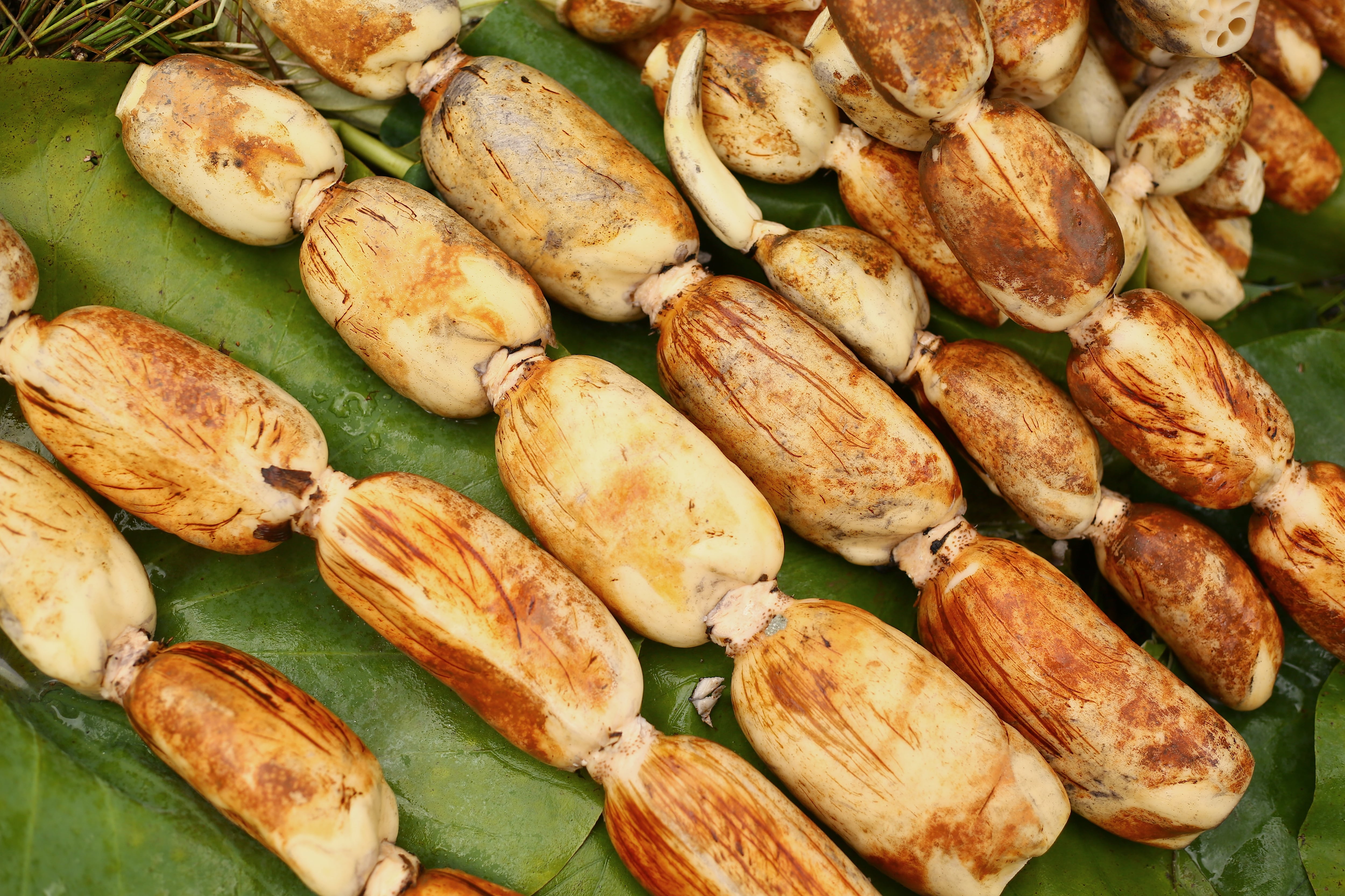 "絶対に最幸の蓮根ができる!"そんな直感から始まったこの地での栽培。にほんの里100選にも選定されている里山、八郷(やさと)の棚田での蓮根は、山からの澄んだ沢水のみで育った自然栽培の蓮根です。昔から非常にお米が美味しい地域で、今もなおご高齢になってもこの地にこだわってお米を作っている方々が沢山います。そんな場所で育った蓮根は、身締まりが強く味が凝縮されていて味が濃く甘い、皮がしっかりとしていて、シンプルに焼いた時の香りはとても強く、蓮根の逞しい自生力を感じることのできる蓮根です。